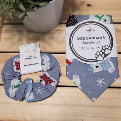 Grey Polar Bear Tie Up Dog Bandana Set (Medium)
