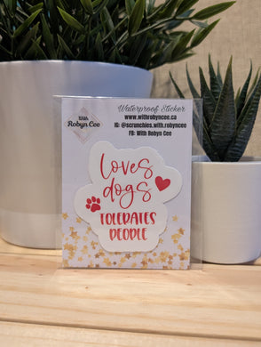 "Loves Dogs Tolerates People" Red Sticker