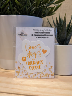 "Loves Dogs Tolerates People" Orange Sticker