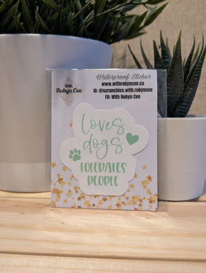 "Loves Dogs Tolerates People" Green Sticker