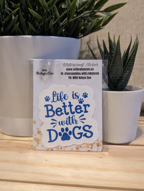 "Life Is Better With Dogs" Bright Blue Sticker