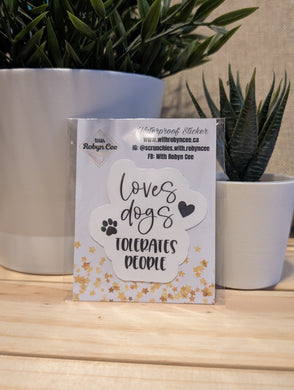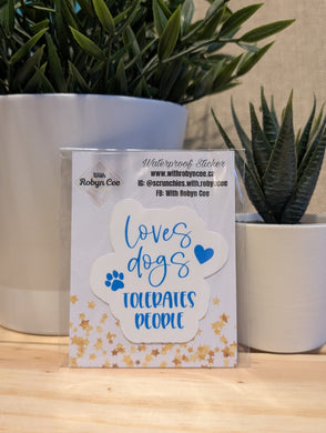 "Loves Dogs Tolerates People" Blue Sticker