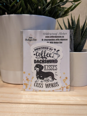 "Powered By Coffee, Dachshund Kisses & Curse Words" Sticker