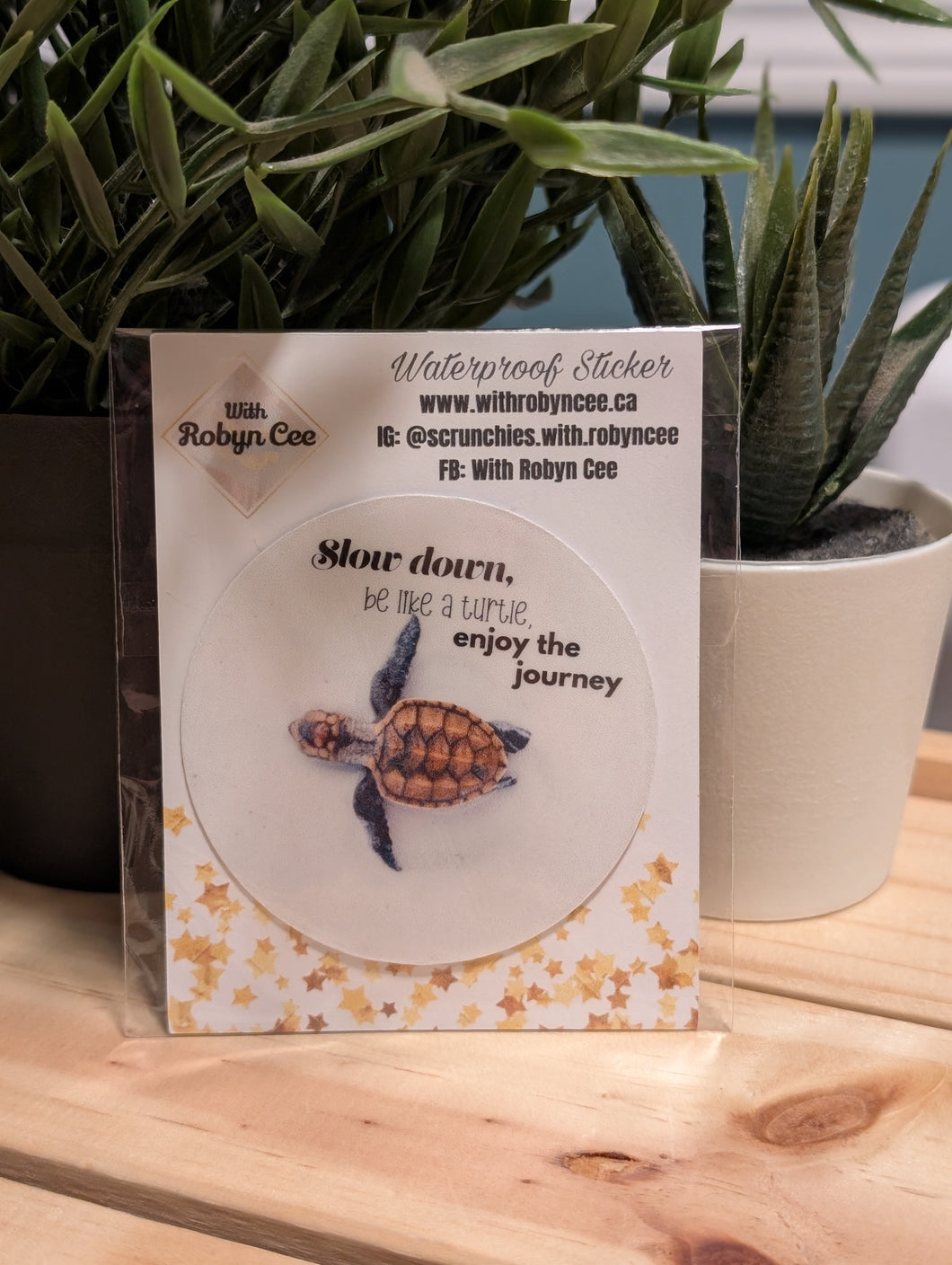 "Slow down, be like a turtle, enjoy the journey" Turtle Sticker